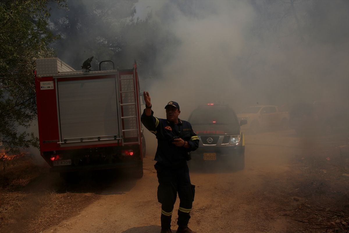 Sahil kasabasının yamacında başlayan yangın yunanistan'ın en yoğun kullanılan otoyolunun kapatılmasına sebep olmuş ve yunanistan yangın. Hala 100'ü aşkın kayıp var.